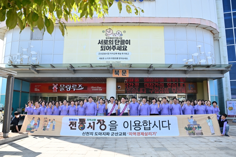신천지예수교 증거장막성전 도마지파 군산교회(담임 오현택·이하 신천지 군산교회)는 10일 오전 군산 공설시장을 방문해 장보기를 하면서 상인의 기운을 북돋고 전통시장 이용을 장려하는 캠페인을 진행했다.