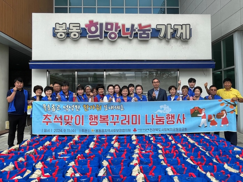 [완주=뉴전북] 완주군 봉동읍 지역사회보장협의체(공동위원장 국인숙, 김의철)가 지난 11일 추석 명절을 맞아 행복꾸러미 나눔을 전달했다.