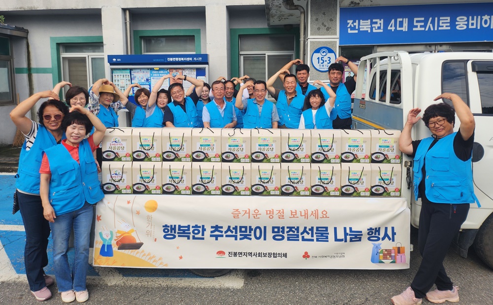 [김제=뉴전북] 김제시 진봉면 행정복지센터는 지역사회보장협의체(위원장 최준영) 지난 12 저소득층 90세대를 위한행복한 추석맞이 명절 선물 나눔사업을 추진했다고 밝혔다.
