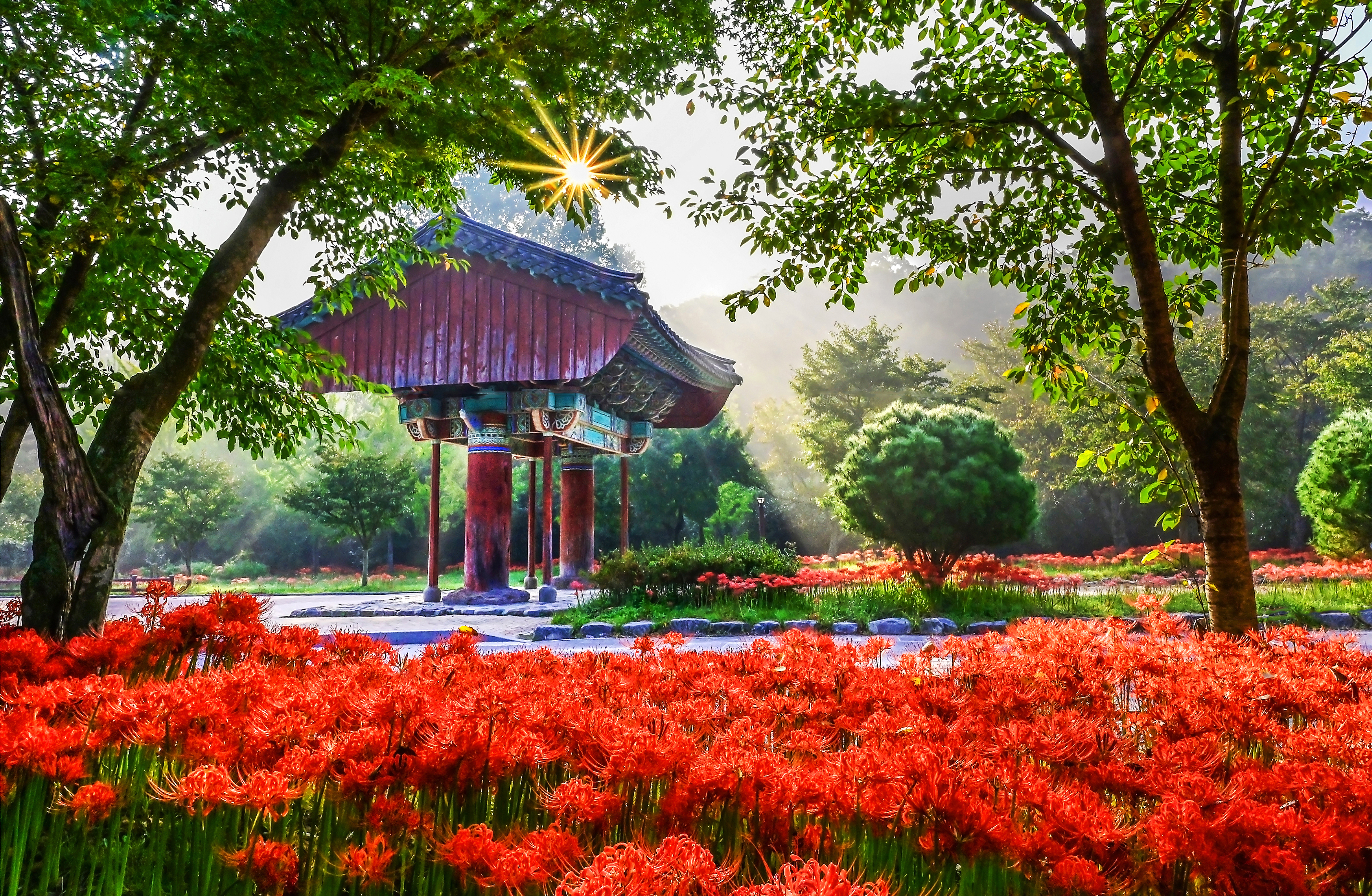 [고창=뉴전북] 바라볼수록 뜨겁게 돋아나는 열정과 그리움. 선운산 계곡 깊숙이 레드카펫이 깔렸다. 가느다란 꽃줄기 위로 여러 장의 빨간 꽃잎이 한데 모여 말아 올린 자태가 빨간 우산을 펼친 것만 같다. 살펴주는 이 아무도 없어도 꽃들은 수수하게 잘도 피었다.