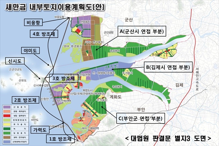 지난 행정안전부 중분위나 대법원 판결에서 10여 년간 정립된만경강과 동진강을 자연 경계로 한 새만금 매립지의 관할 결정구도(군산 앞은 군산김제 앞은 김제부안 앞은 부안)에 따라 이후 매립지들의 관할 결정은 순차적으로 자연스럽게 이루어져야 했다.
