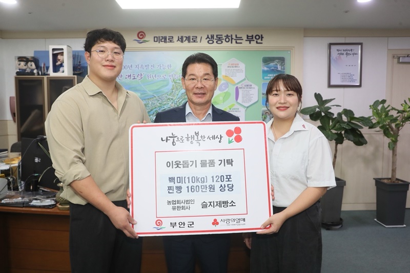 권익현 부안군수는 “어려운 이웃을 위해 나눔을 실천해 주신 슬지제빵소에 진심으로 감사드린다”며, “기탁해주신 백미와 찐빵은 도움이 필요한 이웃들에게 소중히 전달하겠다”고 말했다.