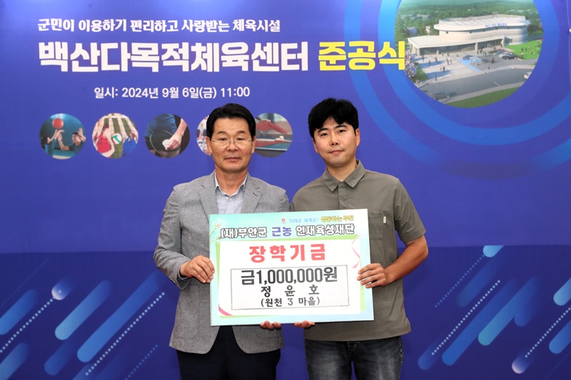 정윤호씨는 한국농어촌공사 ‘청년농업인 대상 농지은행사업 참여 수기공모전’에서 우수상 수상금을 부안군 지역인재양성을 위한 장학금으로 기부했다.