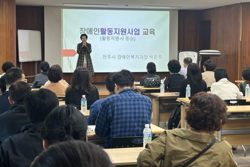 [전주=뉴전북] 전주시는 4일 전북특별자치도장애인복지관에서 장애인활동지원사업 신규 제공기관을 대상으로 활동지원사 교육을 실시했다.