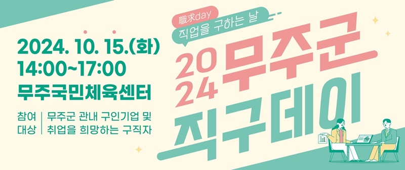 [무주=뉴전북] 무주군은 오는 15일 오후 2시부터 무주국민체육센터에서 “2024년 직구데이(職求day-직업을 구하는 날)”행사를 개최한다고 밝혔다.