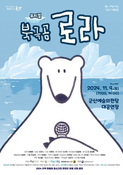 [군산=뉴전북] 군산예술의전당이 예술경영지원센터의 지원사업인 <지역맞춤형 중소규모 콘텐츠 유통사업>의 일환으로 가족 뮤지컬 ‘북극곰 로라’를 오는 11월 9일(토) 군산예술의전당 대공연장에서 올린다고 전했다.