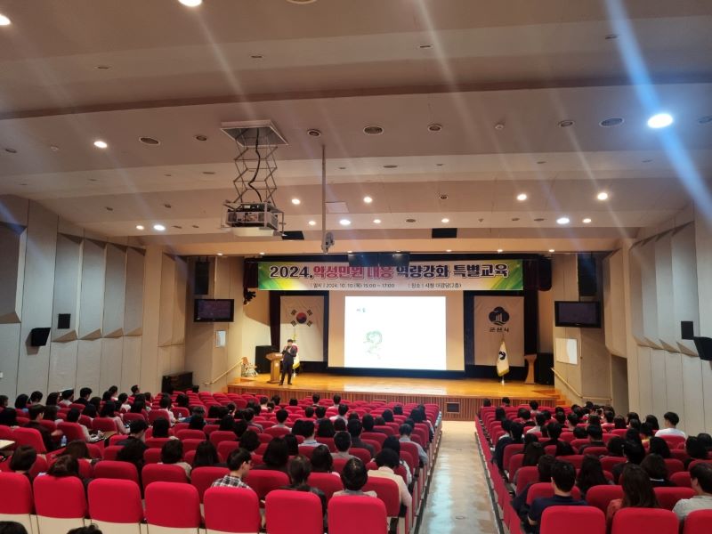 [군산=뉴전북] 군산시는 10월 10일 공직자 300여 명을 대상으로 최근 특별 민원이 증가함에 따라 민원의 효과적 대응과 민원 소통 기술 향상을 위해 특별(악성·고질)민원 대응 역량 강화 교육을 실시했다고 전했다.