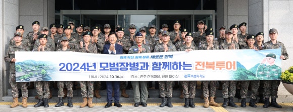 [도정=뉴전북] 전북특별자치도는 16일 35사단, 공군 38전투비행전대 등 관내 군 복무중인 타 지역 출신 모범 장병 40명을 대상으로 ‘모범장병과 함께하는 전북투어’를 진행했다.