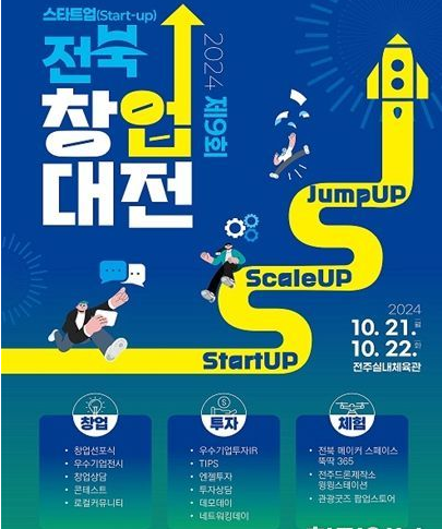 올해 9회째를 맞는 창업대전은 ‘Start-up! Scale-up! Jump-up’이라는 슬로건을 내걸고 21일과 22일 이틀간 전주실내체육관에서 개최된다.