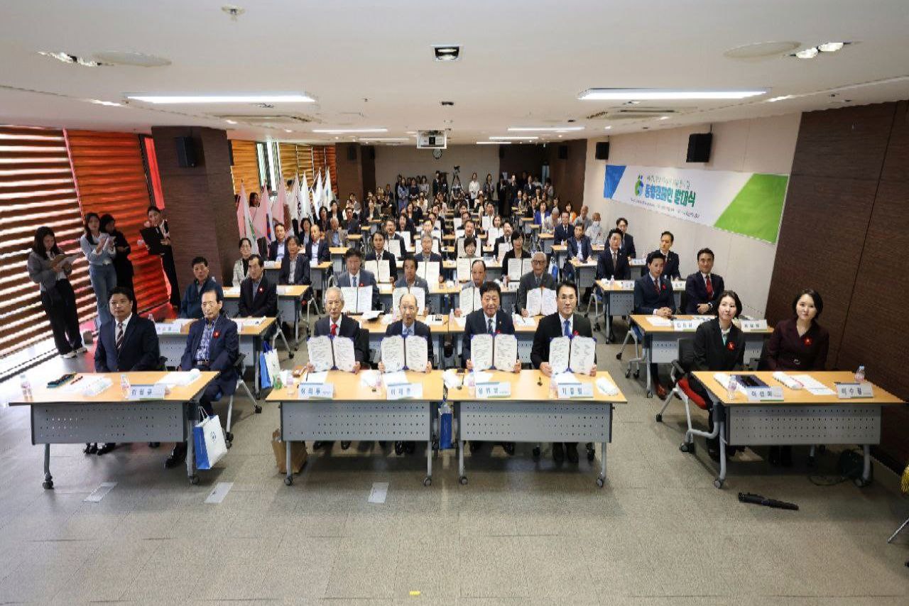 21일 한국 전통문화전당에서 HWPL 글로벌12지부 ‘동행 캠페인’ 발대식이 진행된 가운데 참석자들이 동행 협약서에 서명을 하고 있다.