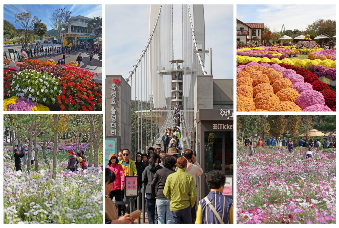 군에 따르면 평일과 주말 할 것 없이 국화와 구절초, 코스모스 등 가을꽃 경관을 보기 위해 옥정호 출렁다리와 붕어섬 생태공원을 찾는 관광객들이 줄을 잇고 있다.