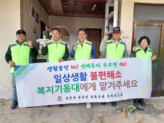 양정우 변산면장은 “어려운 이웃을 위한 일에 발 벗고 나선 복지기동대원들을 격려하며 복지사각지대 및 취약계층의 삶의질 향상을 위해 다양한 복지수요에 귀 기울이고 사각지대없는 지원이 이루어질 수 있도록 힘을 보태주시라.”라고 했다.