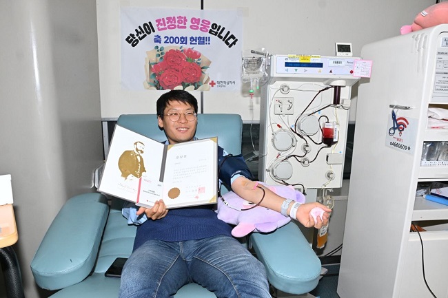 - 20세에 헌혈 시작… 10여 년 만에 200회 달성