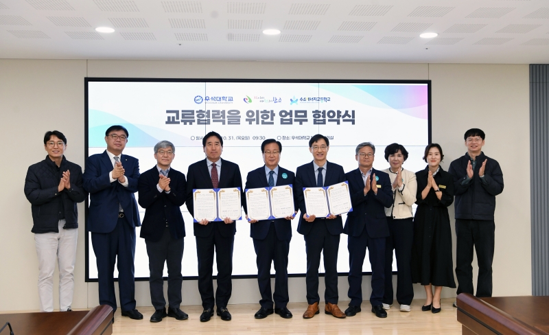 우석대 대학 본관 22층 대회의실에서 열린 협약식에는 유희태 완주군수, 박노준 우석대 총장, 송현진 수소에너지고등학교장 등 각 기관 관계자 15여 명이 참석했다.