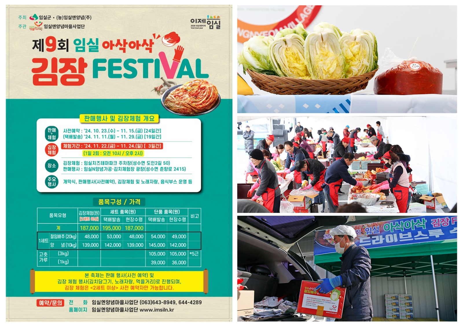 김장 세트 주문은 임실엔 양념마을사업단 전화(063-643-8949, 063-644-4289) 및 홈페이(http://www.imsiln.kr)에서 신청할 수 있다.