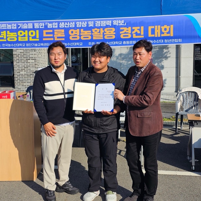 김정훈 씨는 드론 정밀 방제 분야에서 탁월한 성과를 인정받아 대상을 차지했으며, 송희찬 씨가 최우수상을 수상하며 기술력을 증명했다.