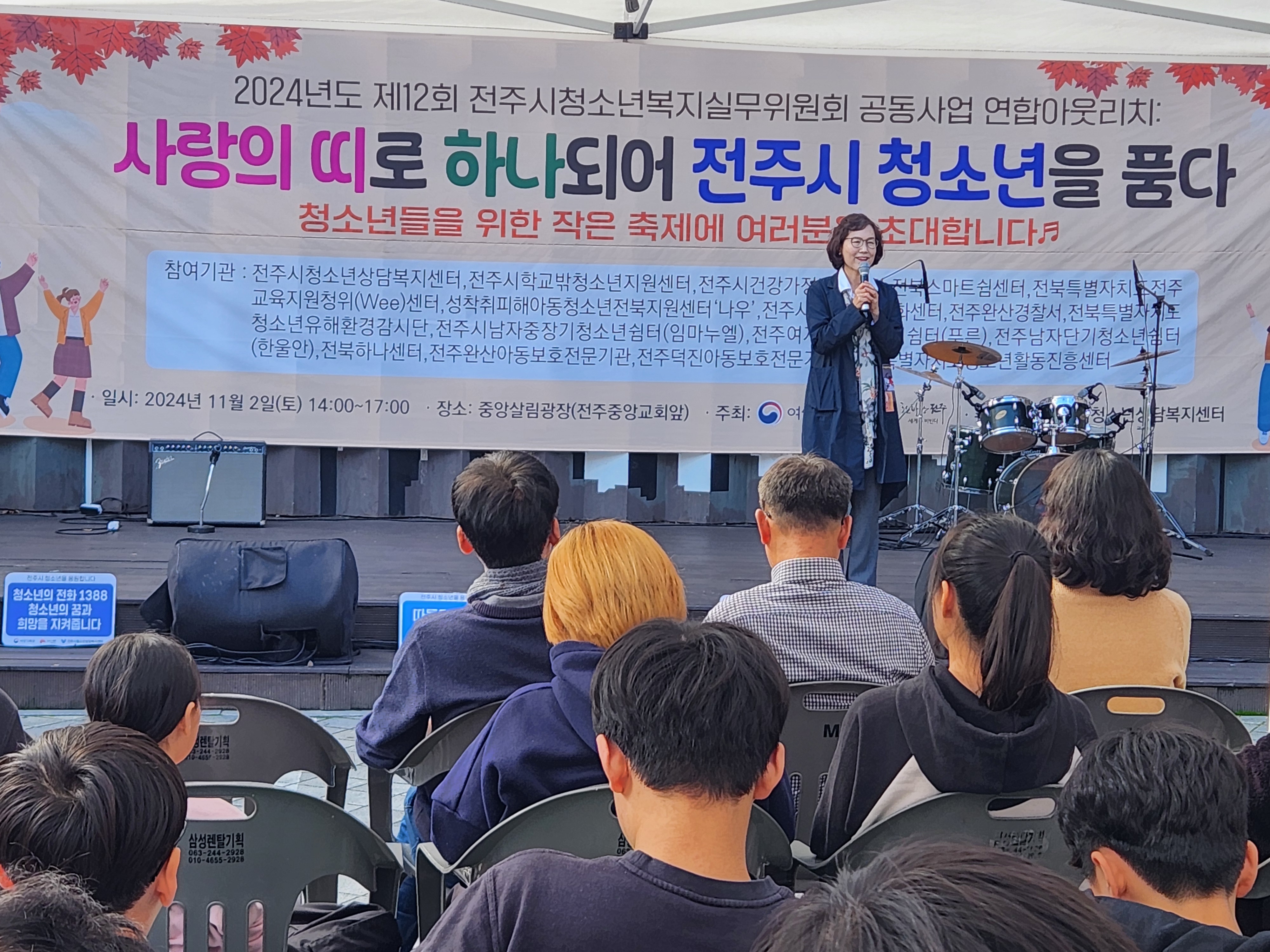 [전주=뉴전북] 전주시청소년상담복지센터(센터장 정혜선)는 지난 2일 오후 2시, 중앙살림광장에서 전주시청소년복지실무위원회에 소속된 청소년 유관기관 공동 사업으로 ‘2024년 연합 아웃리치’를 진행했다.