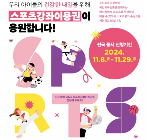 - 오는 8~29일, '스포츠강좌이용권 지원사업' 신청·접수 - 저소득층 유·청소년, 장애인 대상…스포츠강좌 수강료 지원