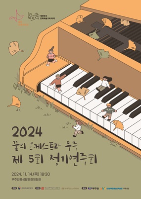 [무주=뉴전북] 제5회 무주군 아란 꿈의 오케스트라 정기연주회가 14일 저녁 6시 30분부터 무주군 전통생활문화체험관에서 개최된다.