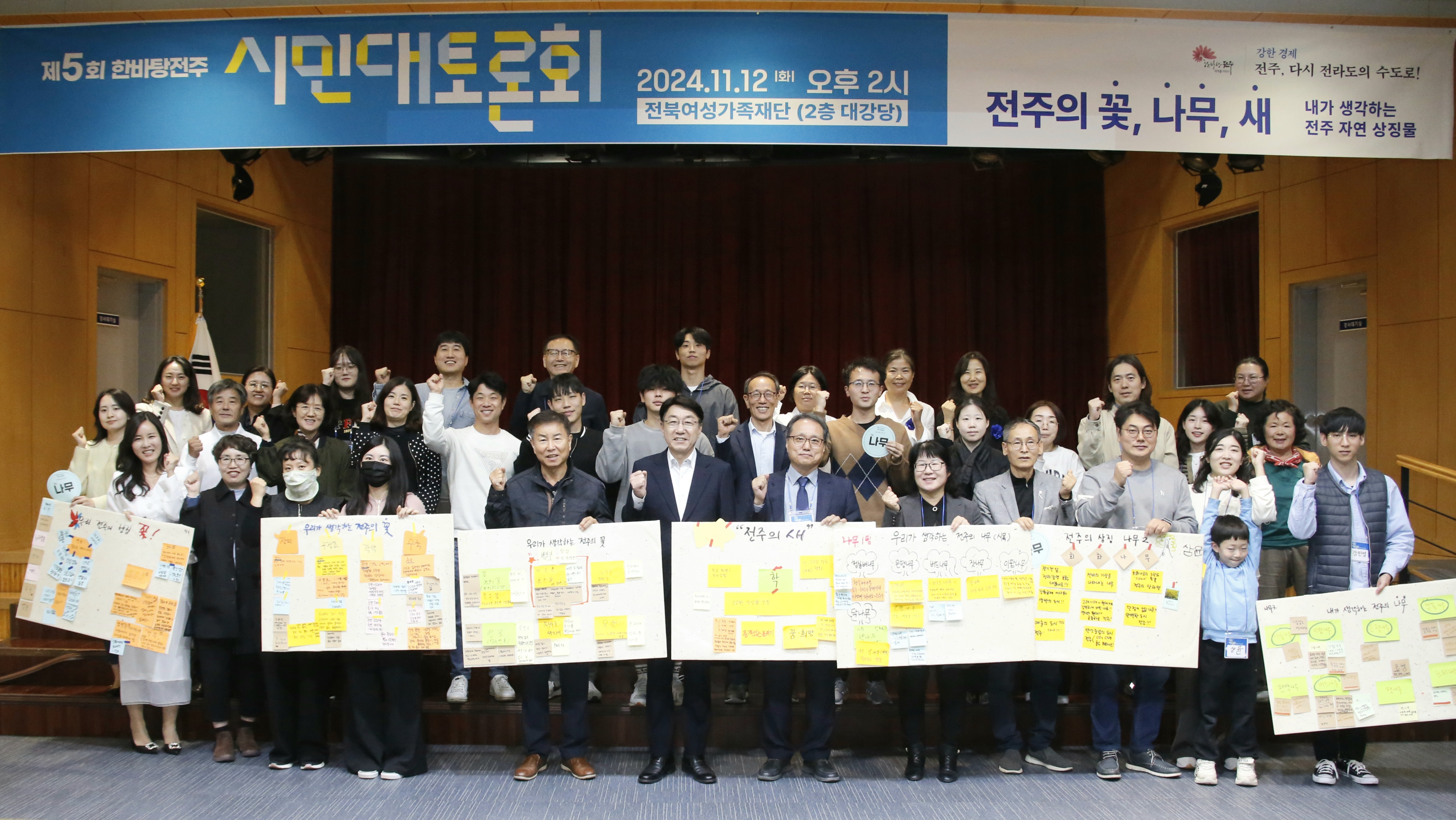 시는 12일 오후 2시, 전북여성가족재단 별관 대강당에서 시민 100여 명이 참석한 가운데 ‘전주의 꽃, 나무, 새-내가 생각하는 전주 자연 상징물’을 주제로 ‘제5회 한바탕전주 시민대토론회’를 개최했다.
