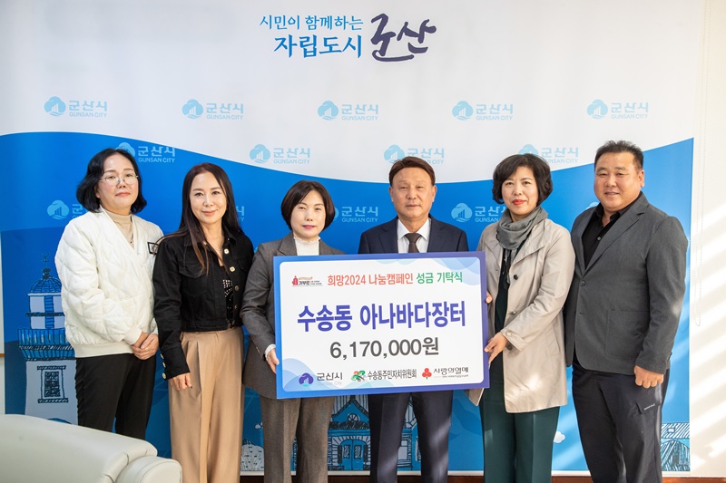 강임준 군산시장은 “힘들고 지친 우리 이웃들을 위해 나눔에 동참해 주신 수송동 주민자치위원회 분들과 주민분들께 깊이 감사드리며, 모인 성금이 어려운 가정에 실질적인 도움이 되길 바란다”라고 전했다.