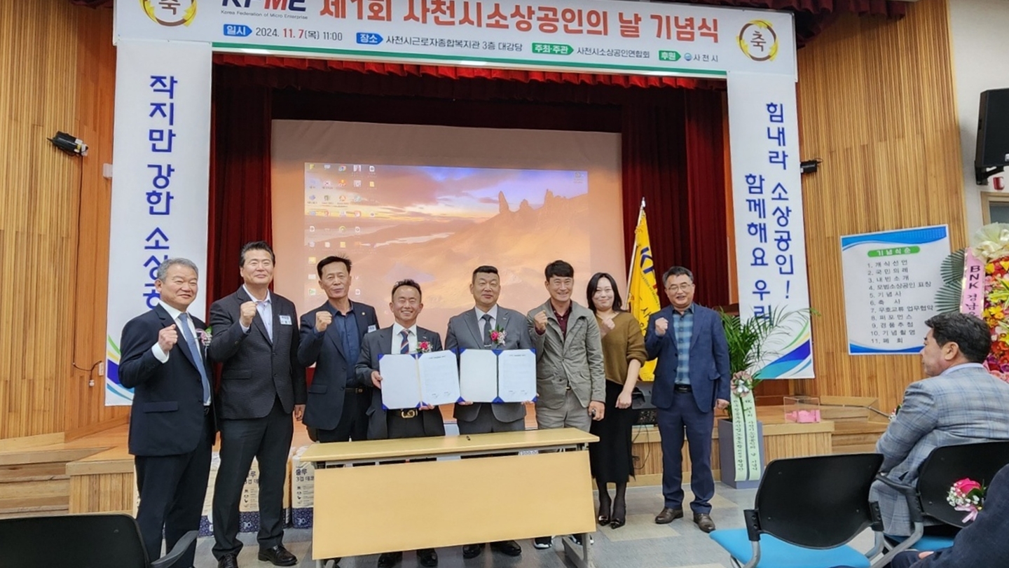 [남원=뉴전북] 전북특별자치도 남원시 소상공인연합회와 경상남도 사천시 소상공인연합회는 지난 117일 사천시 소상공인연합회 대강당에서 150여 명의 내외빈이 참석한 가운데 양 도시의 발전과 상생을 위한 업무협약(MOU) 체결했다고 밝혔다.