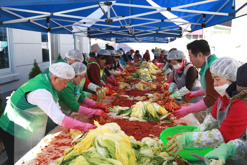 - 직접 재배한 배추 8백 포기로 김치 담가 전달