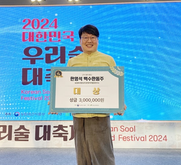정읍시는 한영석의발효연구소가 빚은 약주 ‘백수환동주’가 지난 15일 개막한 ‘우리술 대축제’에서 ‘2024년 대한민국 우리술 품평회’ 약·청주 부문 대상을 수상했다고 20일 밝혔다.