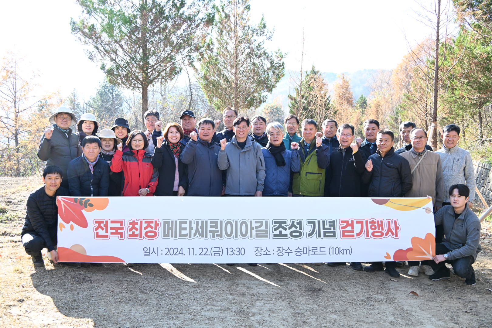 장수군의 상징이 될 이곳은 약 10km에 이르는 전국 최장 메타세쿼이아길로 기록될 전망이며 최훈식 군수는 22일 메타세쿼이아길 조성 완료를 기념해 군청 간부공무원들과 함께 현장을 살피고 걷기 행사를 가졌다.