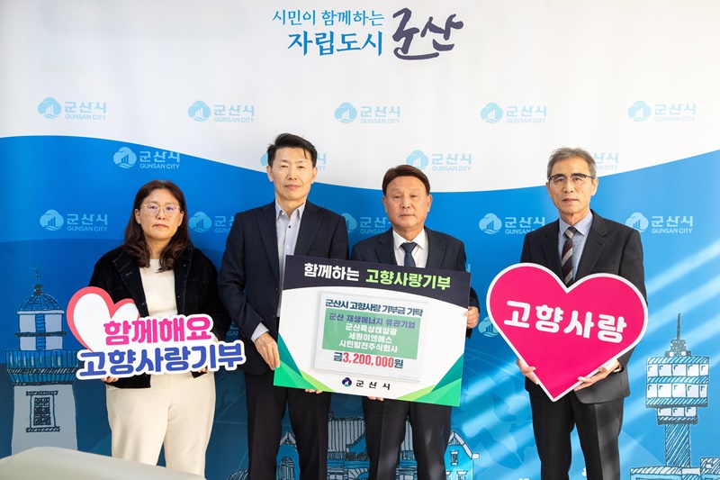 - 군산 재생에너지 관계 기업 대표 및 직원들 고향사랑기부제 동참하며, 320만원 전달