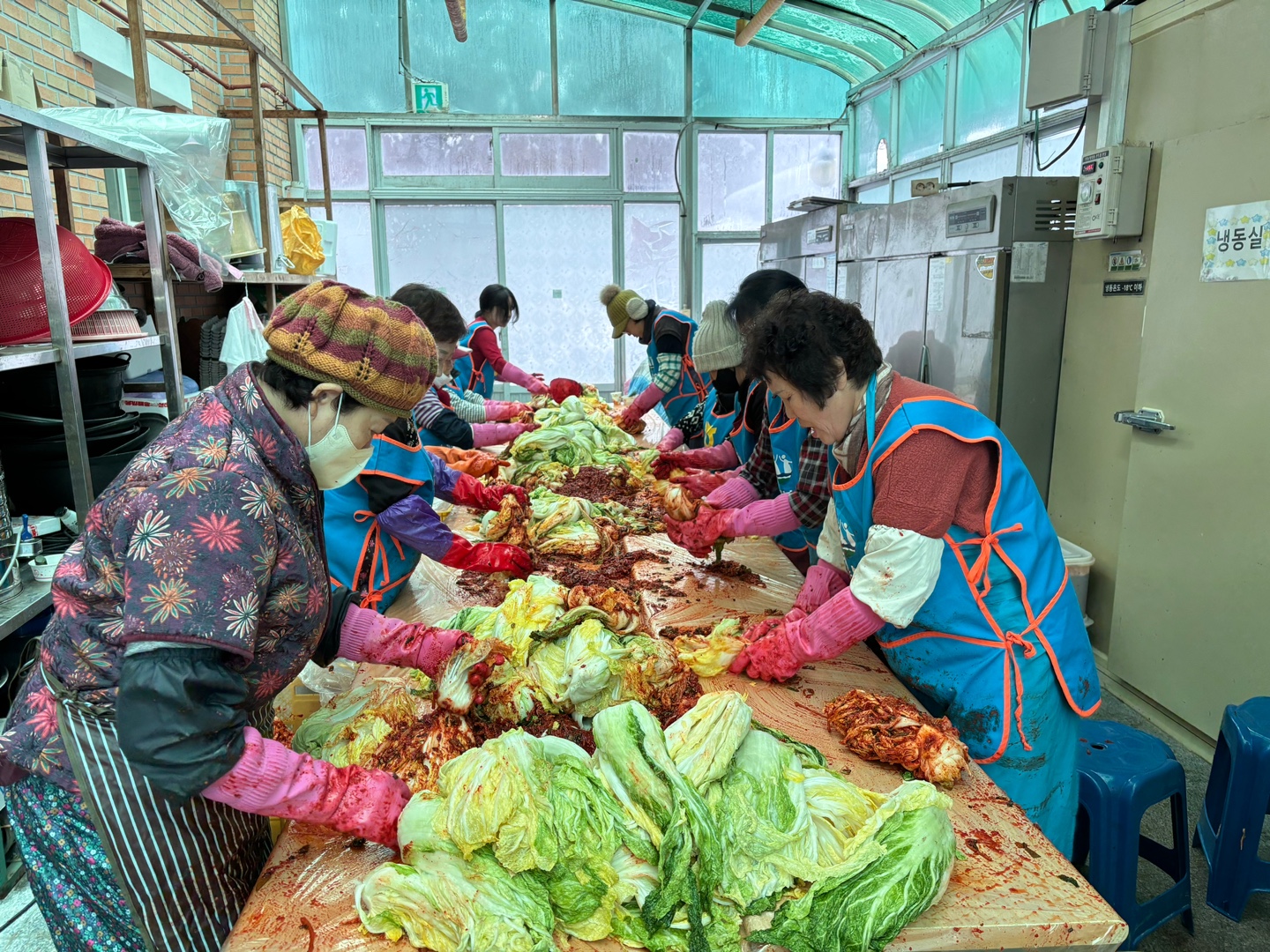 [장수=뉴전북]장수군 천천면은 천사모(천천면을 사랑하는 모임)가 28일 훈훈한 재가노인요양센터에서 입소 노인들의 겨울나기를 돕기 위한 김장 봉사활동을 실시했다고 밝혔다.
