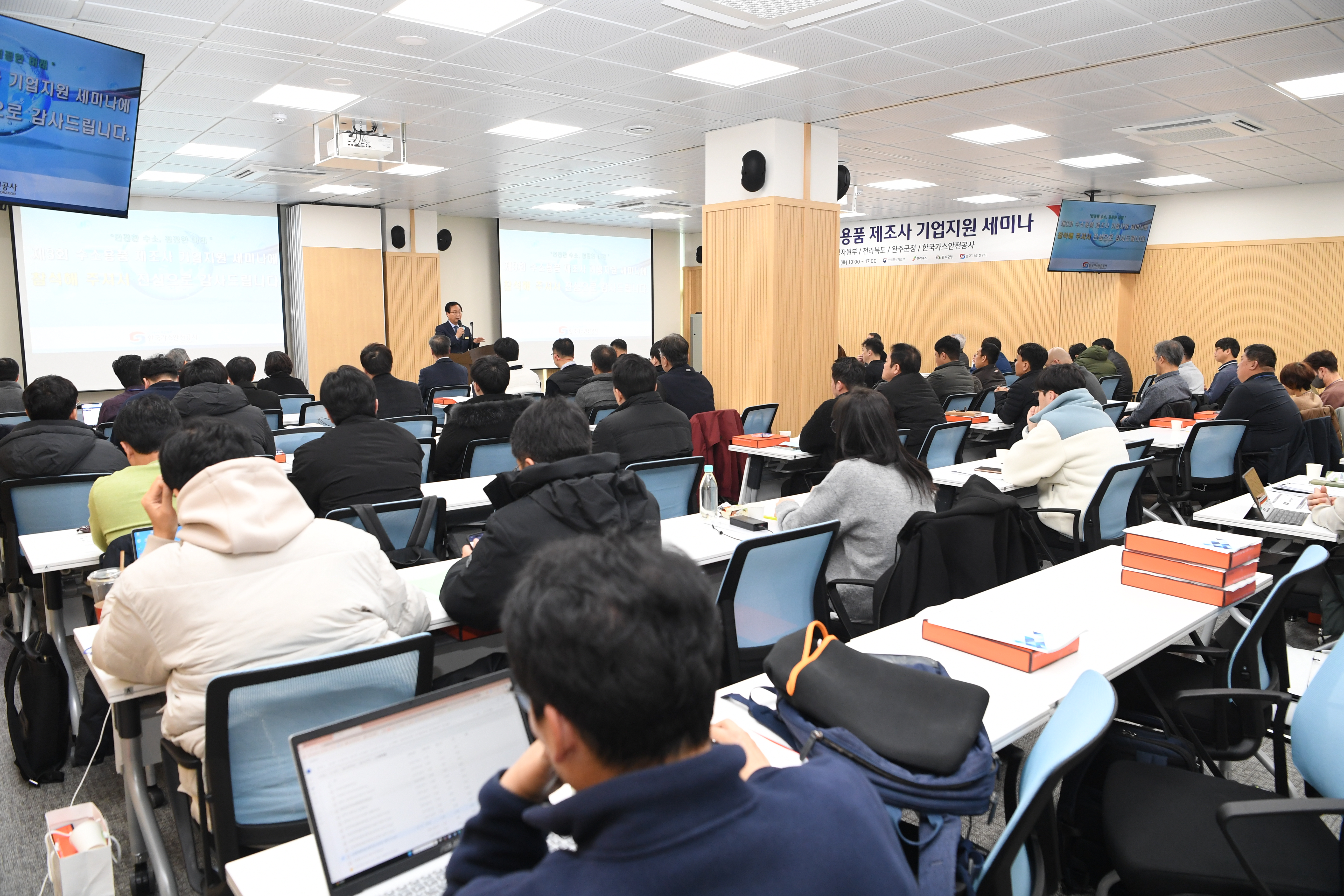5일 완주군은 한국가스안전공사가 주최한 ‘수소용품 제조사 기업지원 세미나’가 수소용품 검사인증센터에서 열렸다고 밝혔다.