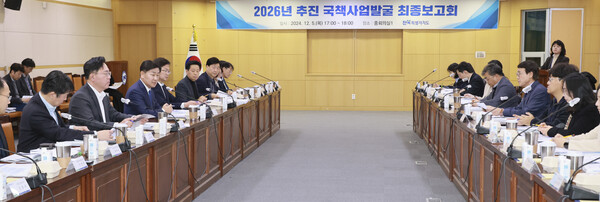 [도정=뉴전북] 전북특별자치도가 5일 도청 중회의실에서 김관영 도지사 주재로 ‘2026년 국책사업 발굴 최종 보고회’를 개최했다.