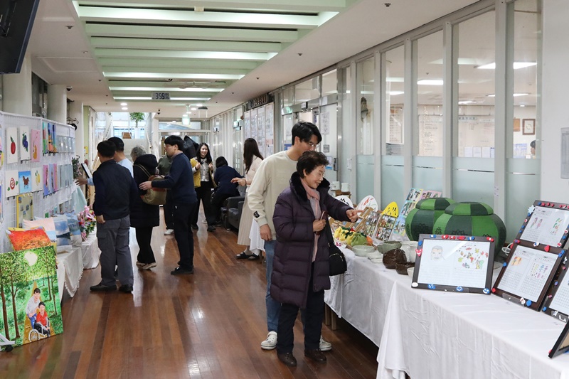 12월 2일부터 13일까지 약 2주일간 진행되는 작품전시회는 9개 분야 서예, 수묵화, 공예, 도예, 사진, 미술, 그림책 등 100점의 다양한 작품들이 복지관 1층에 전시됐으며, 어르신들이 작품 관람 및 소감을 남겨줬다.