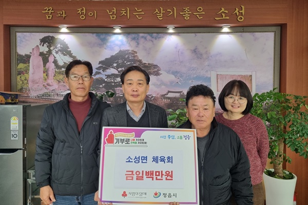 지난 9일성면 체육회(회장 이현주)는 100만원의 성금을 기탁했다. 기탁된 성금은 사회복지공동모금회를 통해 소성면 저소득 취약계층을 돕는 데 사용될 예정이다.