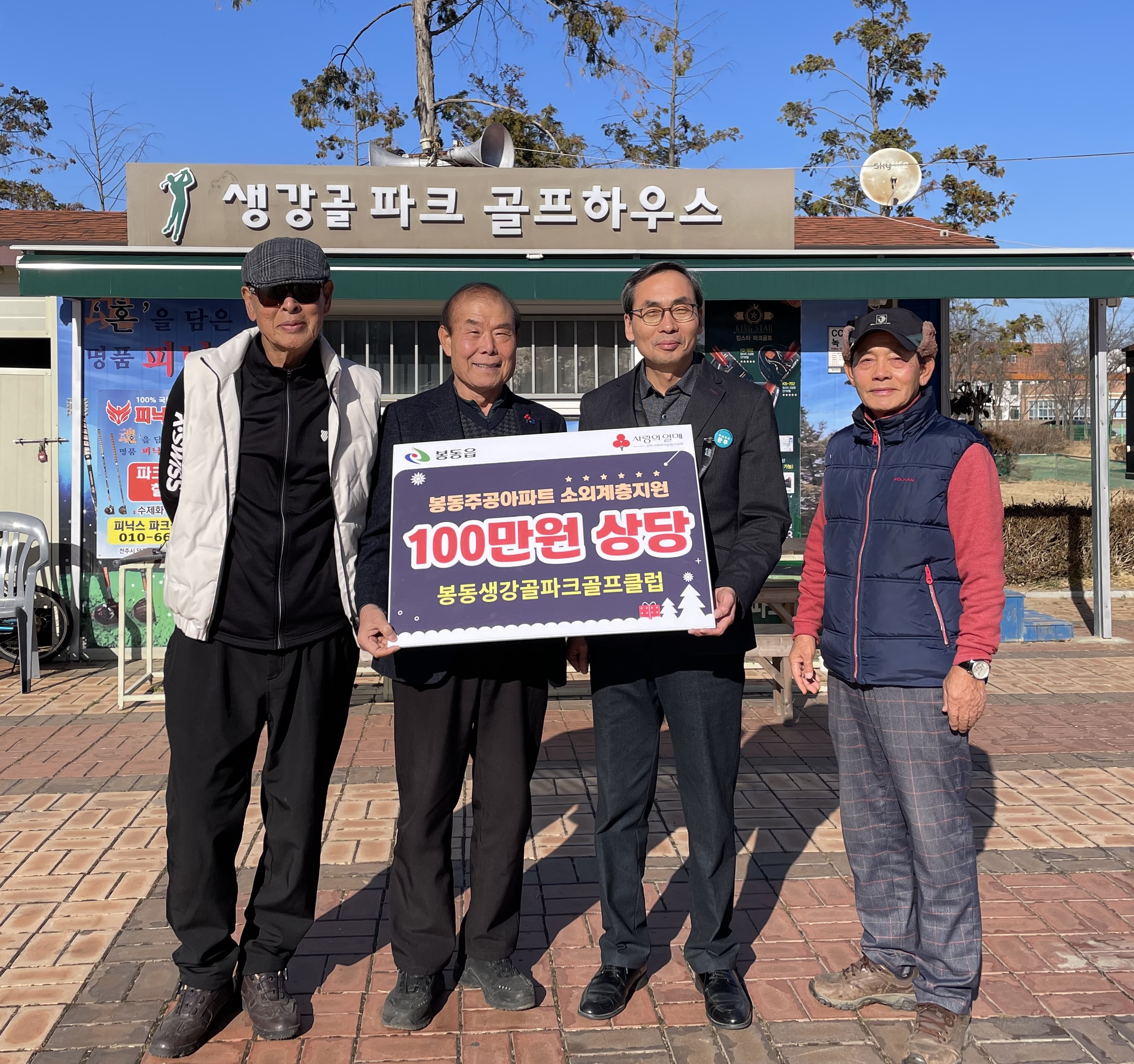 [완주=뉴전북] 완주군 봉동생강골파크골프클럽(회장 류건옥)이 회원들이 십시일반 모은 100만 원의 성금을 봉동읍에 기탁했다.