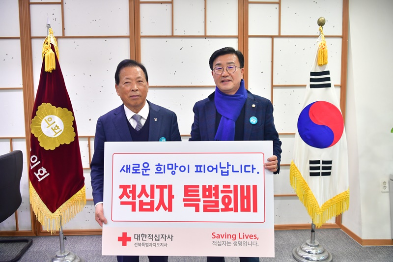 이날 전달식은 유의식 의장, 김재천 부의장을 비롯한 이선홍 대한적십자사 전북지사 회장 등 10여 명이 참석했다.