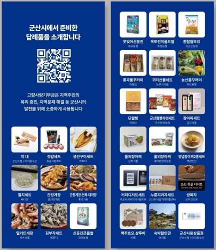 [군산=뉴전북] 군산시는 13일 ‘2025년 군산시 고향사랑기부제 답례품 및 공급업체’ 공개 모집을 실시한다고 밝혔다.