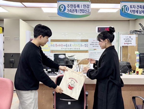책꾸러미는 북스타트 에코백과 성장 연령에 맞춘 그림책 2권, 부모를 위한 안내 가이드북 등으로 구성돼 있다.