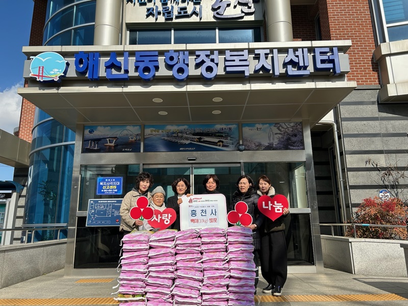 전미영 해신동장은 “잊지 않고 매년 쌀을 기탁해주셔서 정말 감사드린다”며 “기탁받은 백미는 도움의 손길이 필요한 이웃들에게 전달하겠다”고 밝혔다.