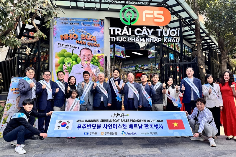 4일에는 베트남 내 최다 지점을 보유하고 있는 대형 상점인 f5플루트마트에서 무주반딧불 샤인머스켓 판촉 행사 벌여 현지인들의 입맛을 사로잡았다. 또 수입 바이어를 만나 무주반딧불 농산물 수출 조건을 타진하는 시간도 가졌다.
