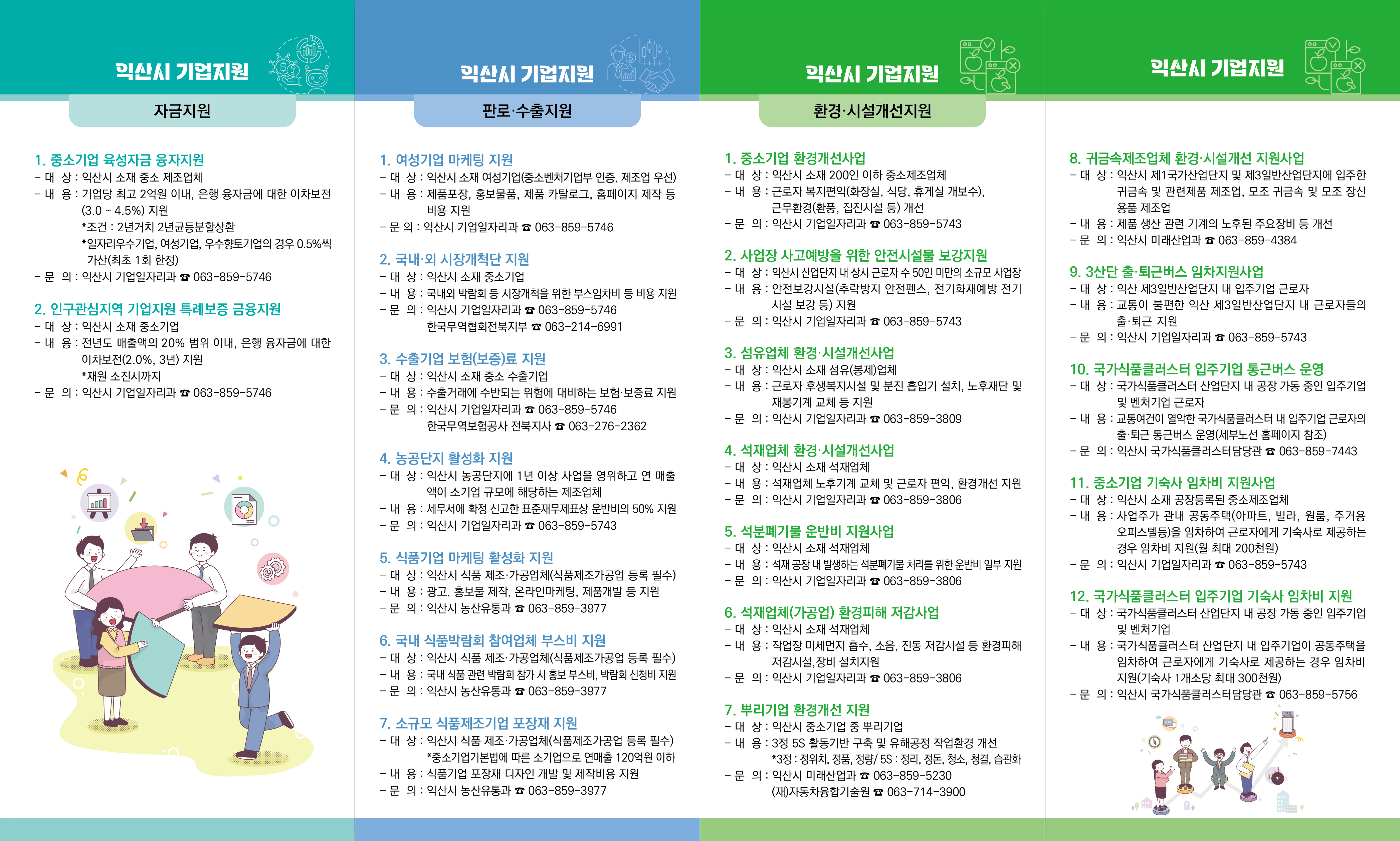 익산시는 지역 중소기업을 구직자들이 찾는 일터로 만들어 가기 위해 근로여건 개선에 힘쓴다. 이를 위해 사업장 사고예방 지원, 중소기업 환경개선, 중장년(시니어) 기술창업센터 지원 등 14개 사업에 19억 2,000만 원을 지원한다.