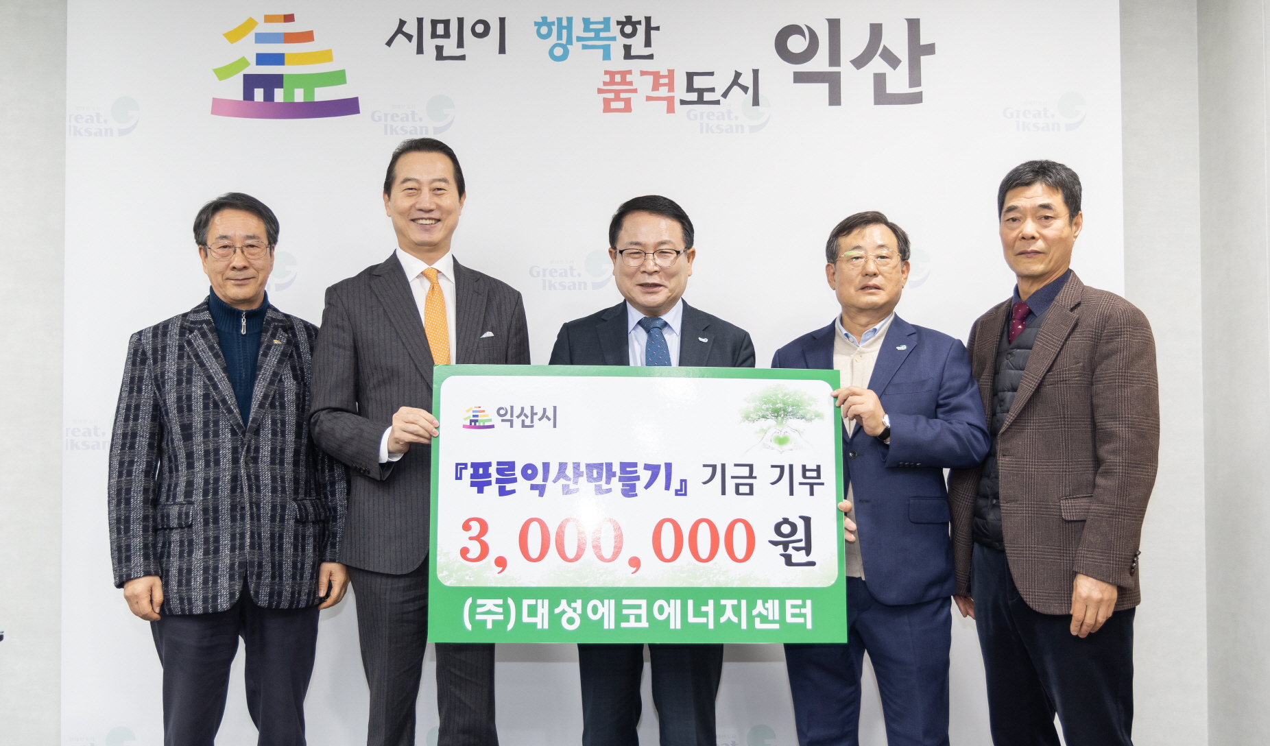이날 전달된 성금은 ㈔푸른익산가꾸기 운동본부에 기탁된 후 나무식재에 활용될 예정이다.
