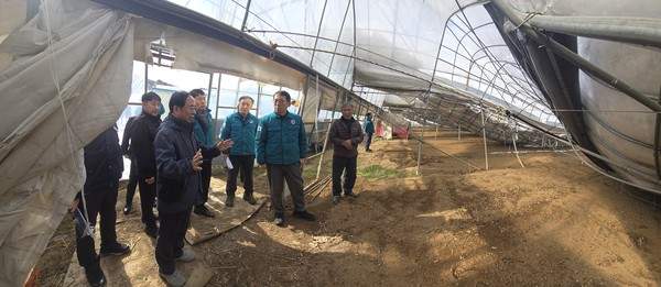 군에 따르면 심 군수는 지난 6일 방문한 행정안전부 박형배 자연재난대응국장과 전북특별자치도 오택림 도민안전실장 등과 같이 설을 전후에 내린 폭설로 피해를 입은 성수면과 신평면을 직접 방문하여 피해 상황을 점검했다.
