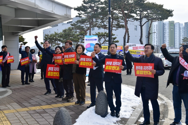 이밖에도 의원들은 “전주시와 전북도 측의 일방적인 통합추진과 일부 찬성단체들의 선심성 발언 등은 그 누구 담보할 수 없는 허언”이라고 강조했다.