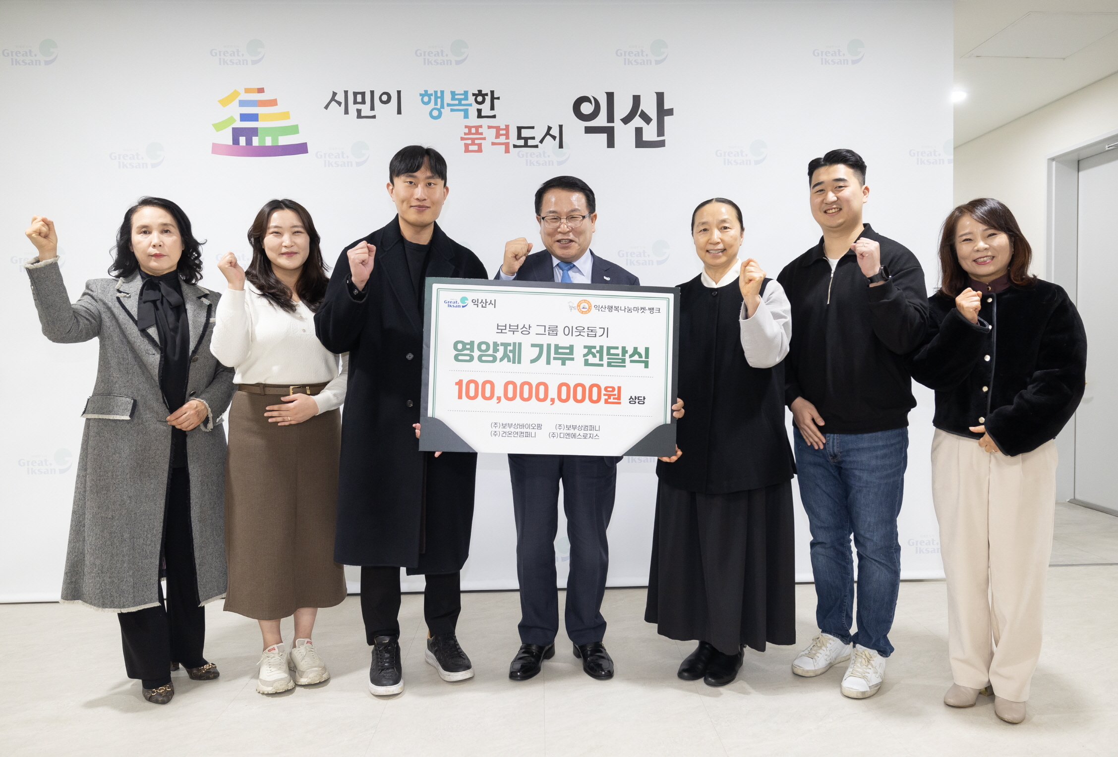 [익산=뉴전북] 보부상그룹(대표 백두현)은 시청을 방문해 영양제 5,000세트(1억 원 상당)를 기탁했다.