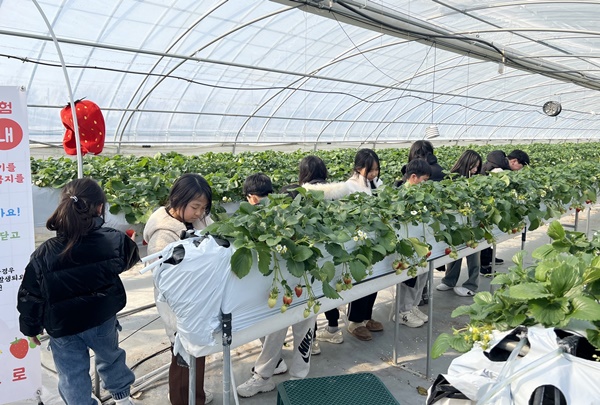 정읍시 드림스타트는 지난 14일 지역 내 딸기 농장에서 아동 24명을 대상으로 딸기 따기 체험 프로그램을 진행했다.