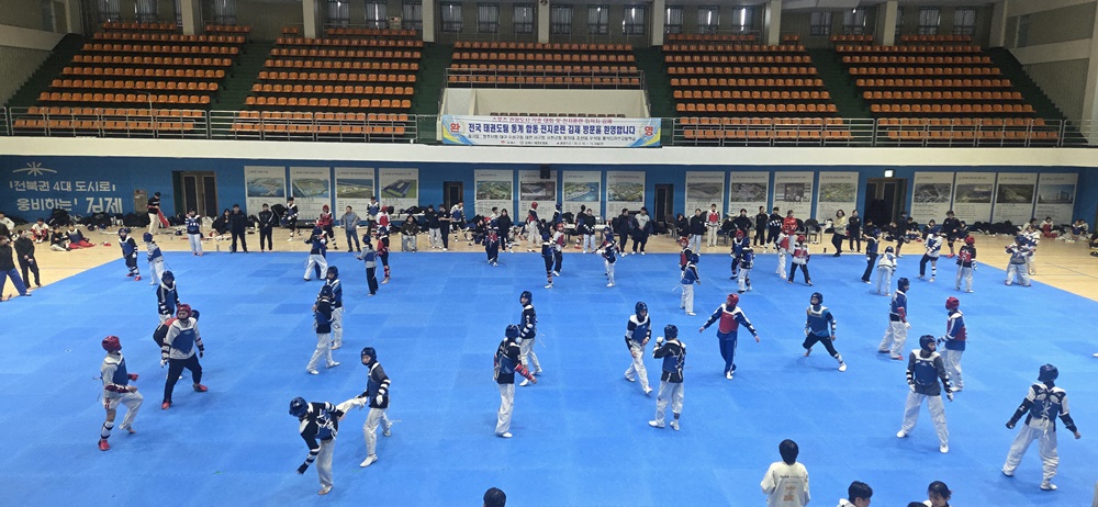 [체육=뉴전북] 김제시(시장 정성주)에 따르면 지난 10일부터 15일까지 김제시 실내체육관에서 전국 태권도팀 동계 합동 전지훈련이 성황리에 마무리됐다이번 훈련에는 전국 각지에서 온 태권도 선수들과 지도자들이 참여해 실력 향상과 상호 교류의 기회를 가졌고참가자들의 뜨거운 열정과 노력이 돋보였다.