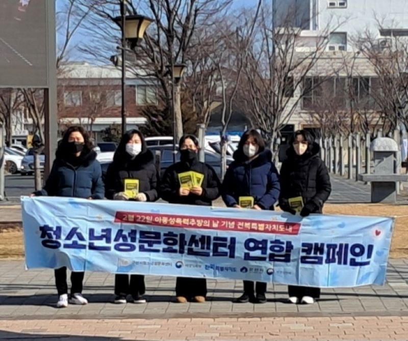 군산시청소년성문화센터는 전북특별자치도 내 전주·익산·정읍 성문화센터와 함께 인식개선 홍보물을 배부했고, 아동 성폭력에서 안전한 환경 조성을 위해 시민들의 실천을 촉구했다.