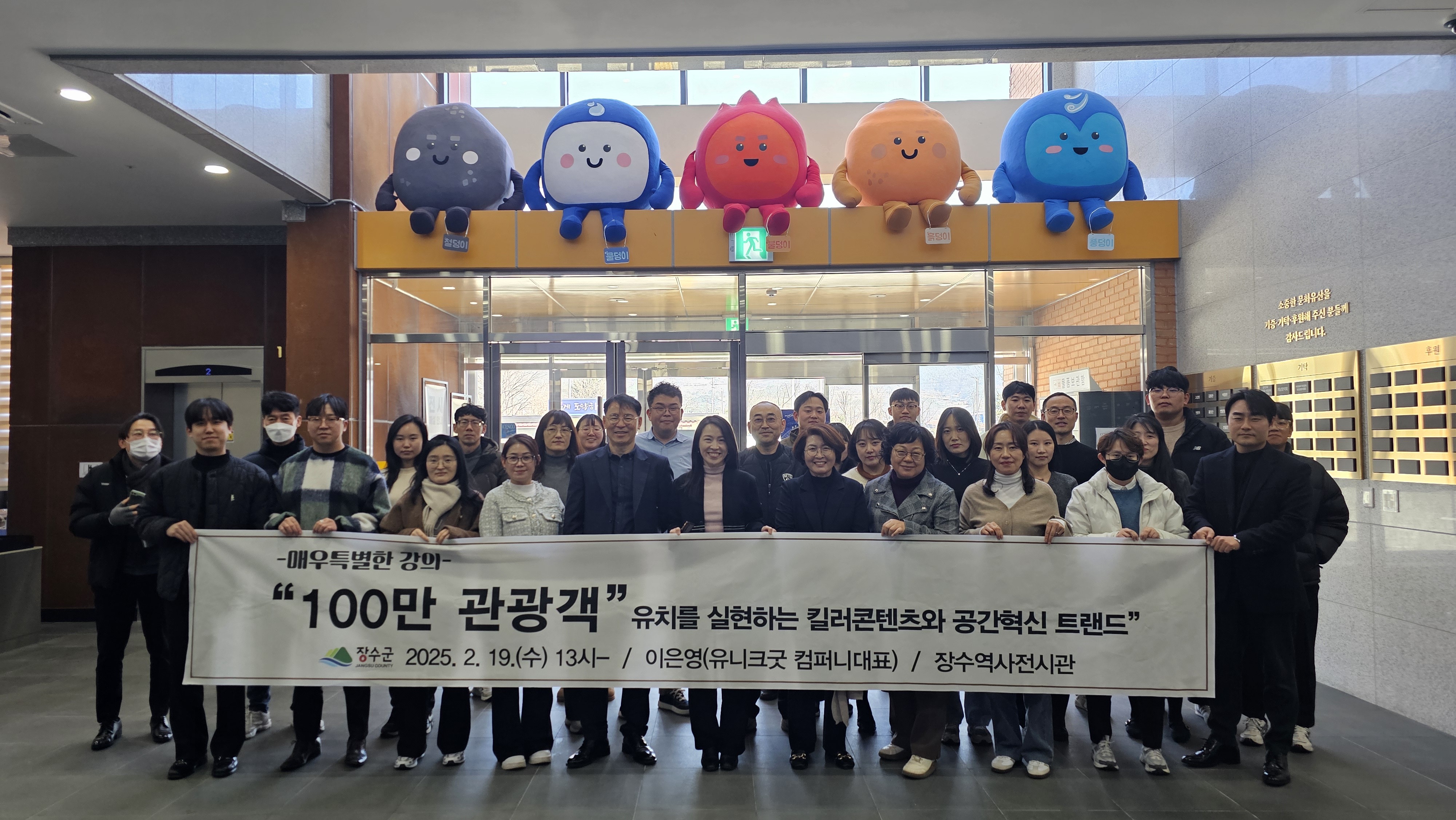 [장수=뉴전북]장수군은 지난 19일 유니크굿컴퍼니 이은영 공동대표가 장수군을 방문해 ‘100만 관광객 실현을 위한 킬러콘텐츠와 공간혁신 트렌드’를 주제로 특강을 진행했다고 밝혔다.